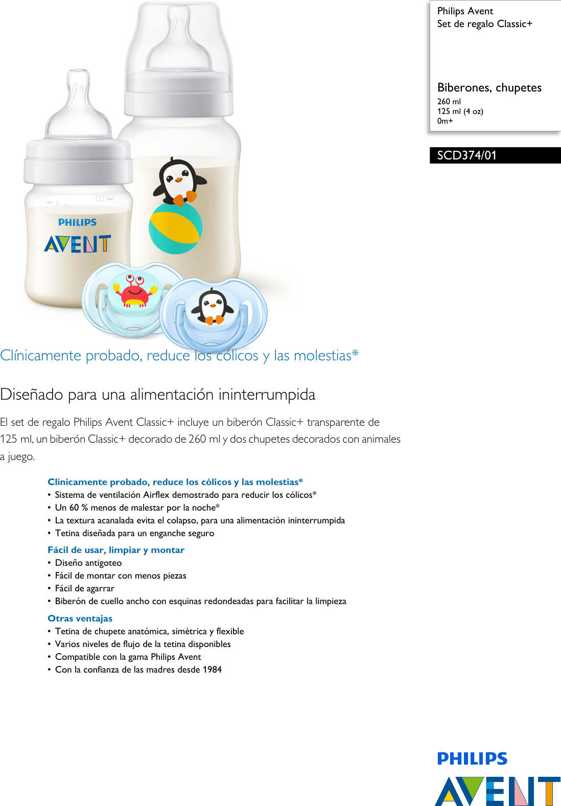 Set De Regalo Philips Para Nino Biberon Classic Con Chupon De Regalo