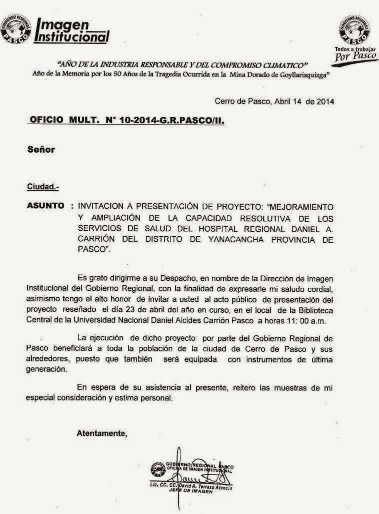 invitacion para presentacion de proyecto