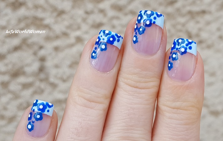 Life World Women Light Blue French Manicure With Toothpick Flowers